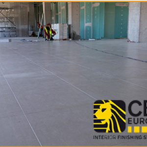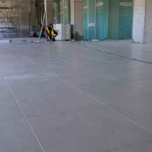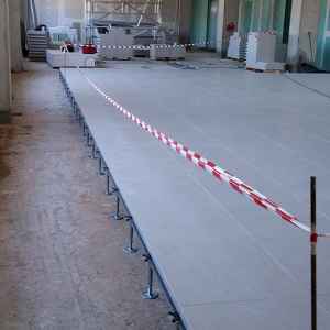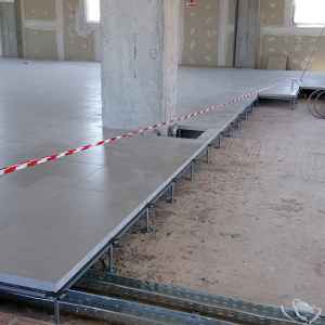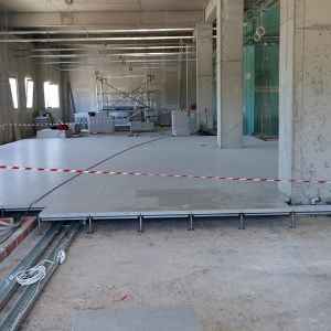 H συνολική ποσότητα ήταν 520 m2 και ο τύπος που επιλέχθηκε από τον κύριο του έργου ήταν δάπεδο μοριοσανίδας διαστάσεων 600x600x38mm με τελική επικάλυψη από Ιταλικό κεραμικό πλακίδιο Habitat πάχους 10mm.