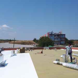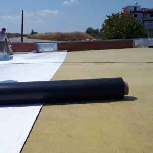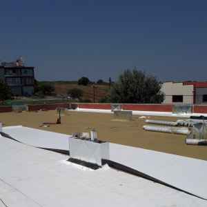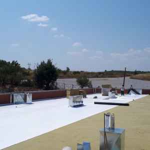 Για την στεγανοποίηση επιλέχθηκε η λευκή στεγανοποιητική μεμβράνη TPO Sureweld της Carlisle Syntec Αμερικής, πάχους 1,5mm.